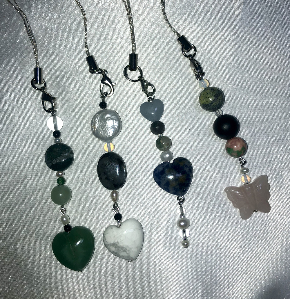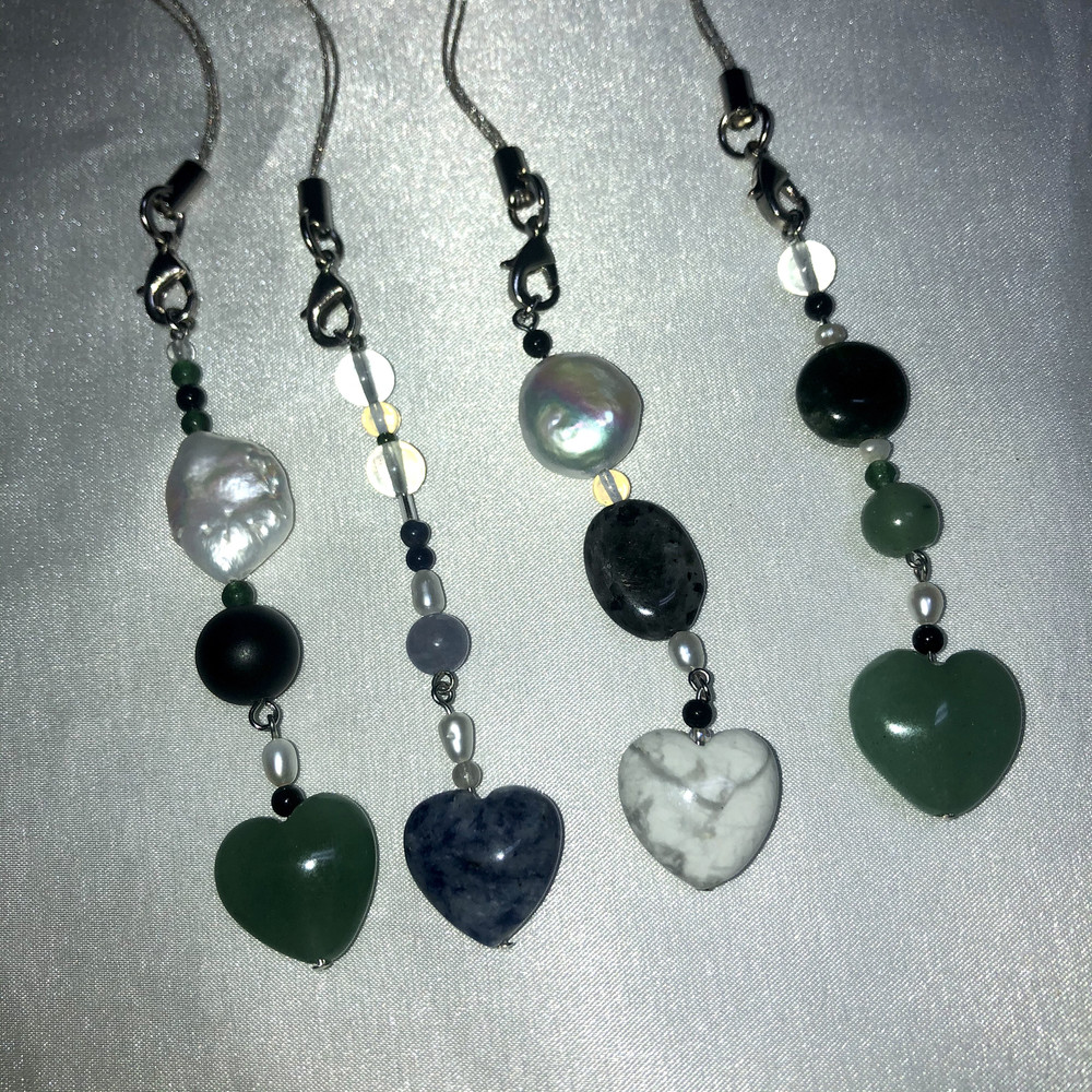 다양한 천연원석과 진주로 포인트를 준 키링으로 가방,휴대폰,바지등등