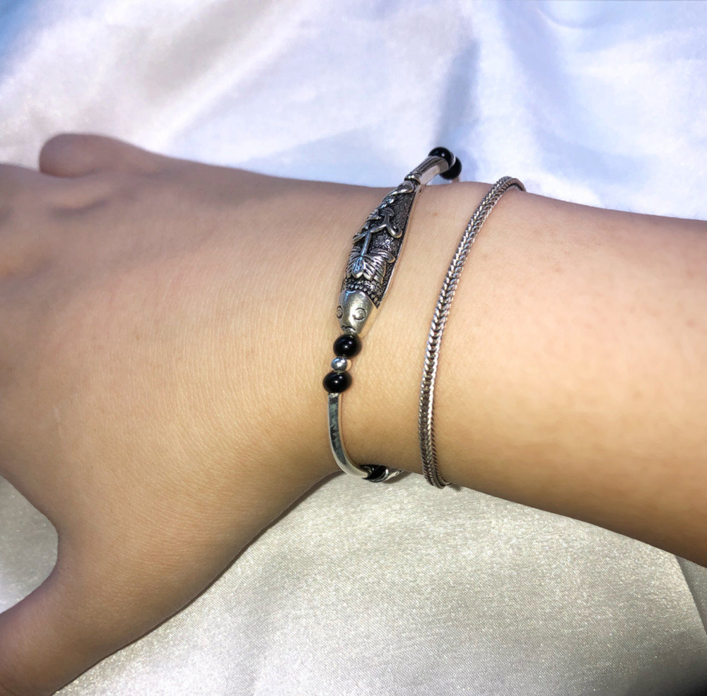 탄성이 있는 팔찌 줄을 사용해서 사이즈가 자유롭습니다.