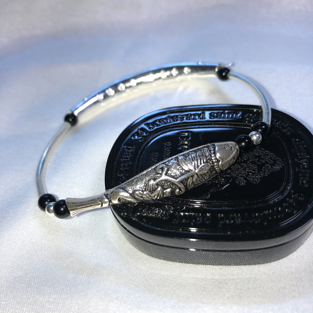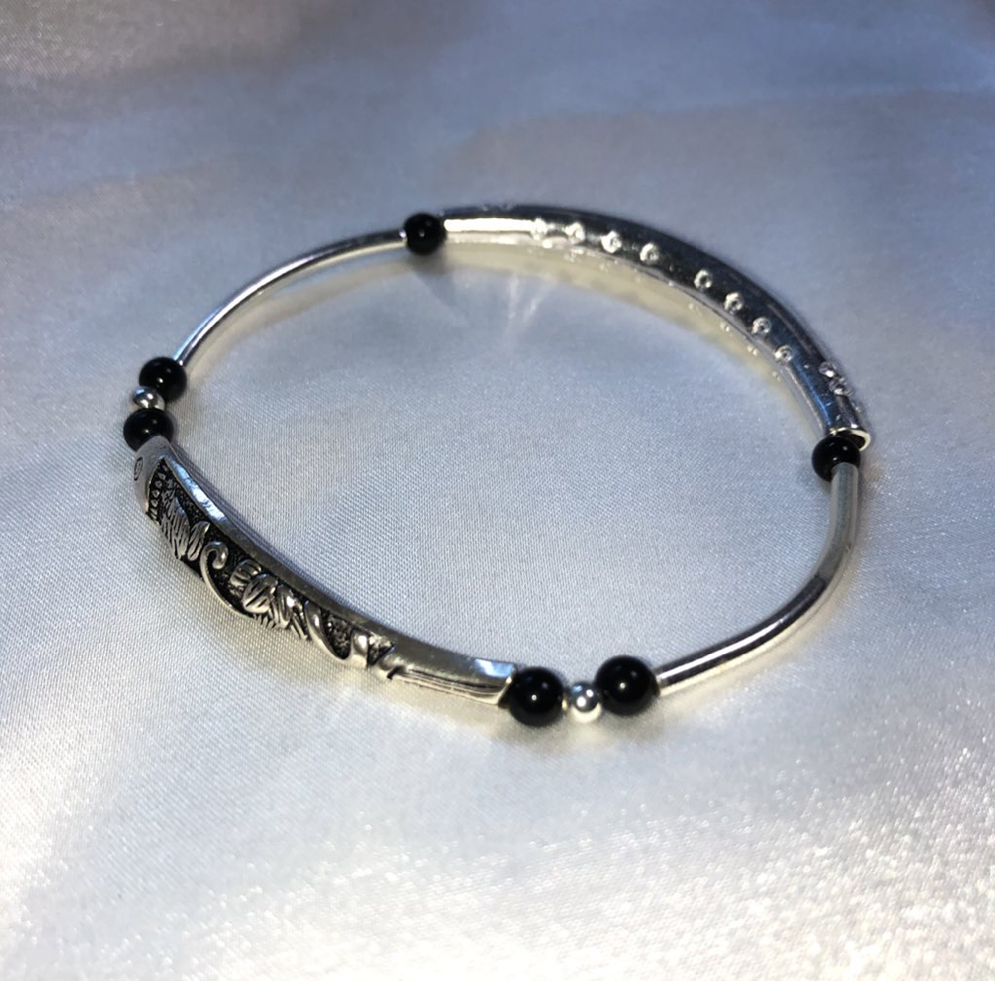 섬세하고 디테일 한 조각 팔찌에 유광 오닉스를 틈틈히 끼웠습니다.