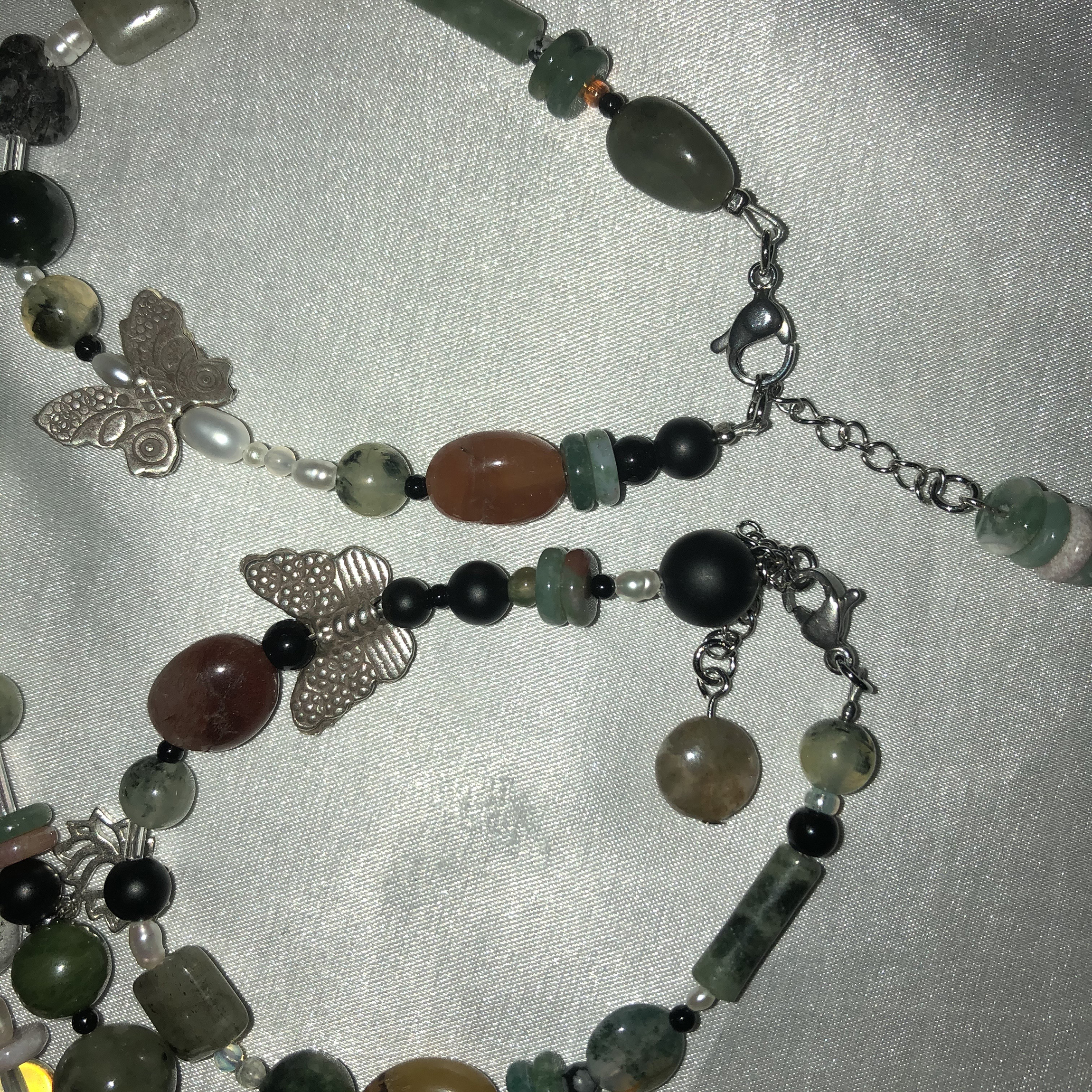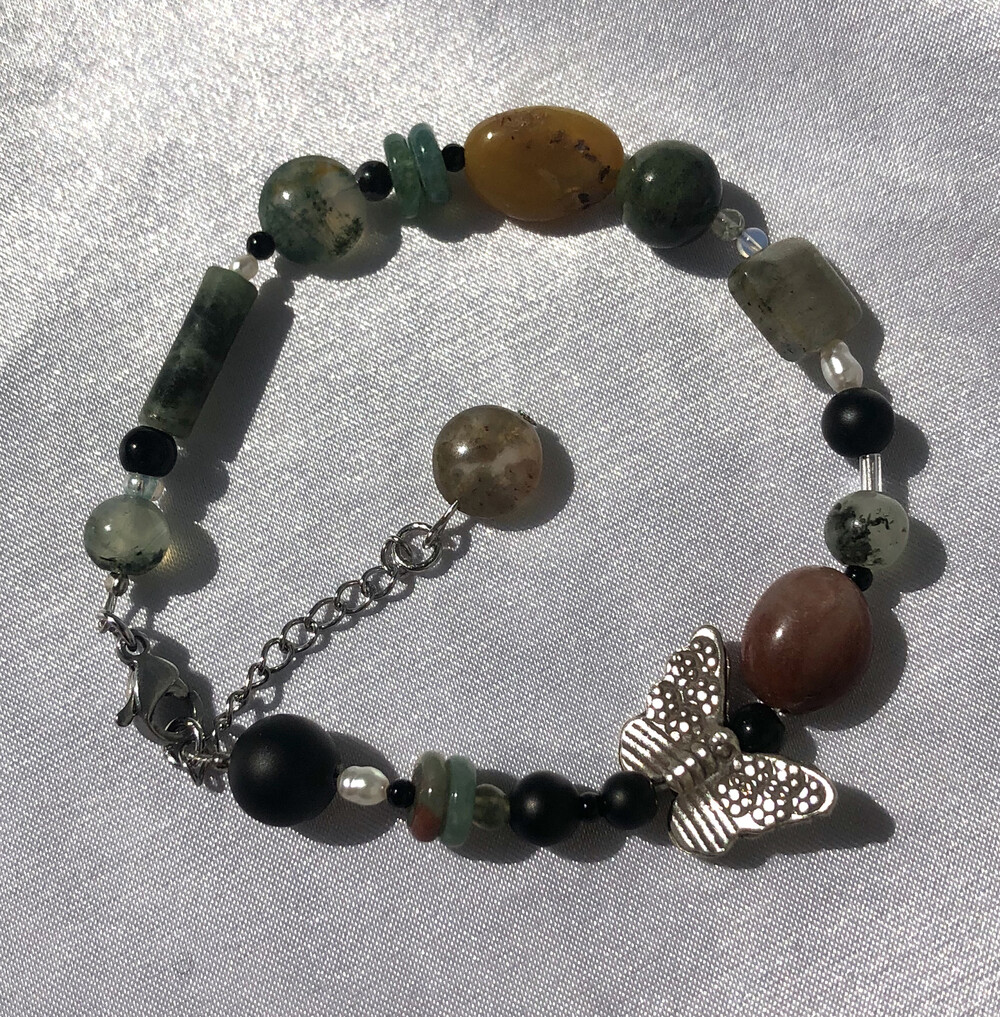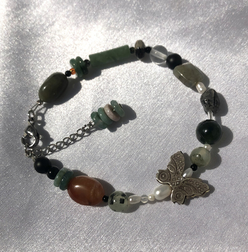 은 나비를 중심으로 녹색과 호박색 붉은 색의 원석을 사용했습니다.