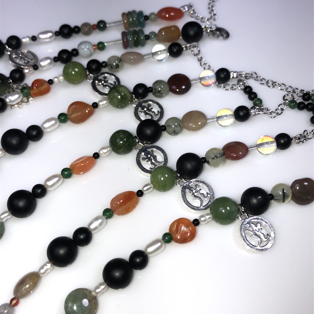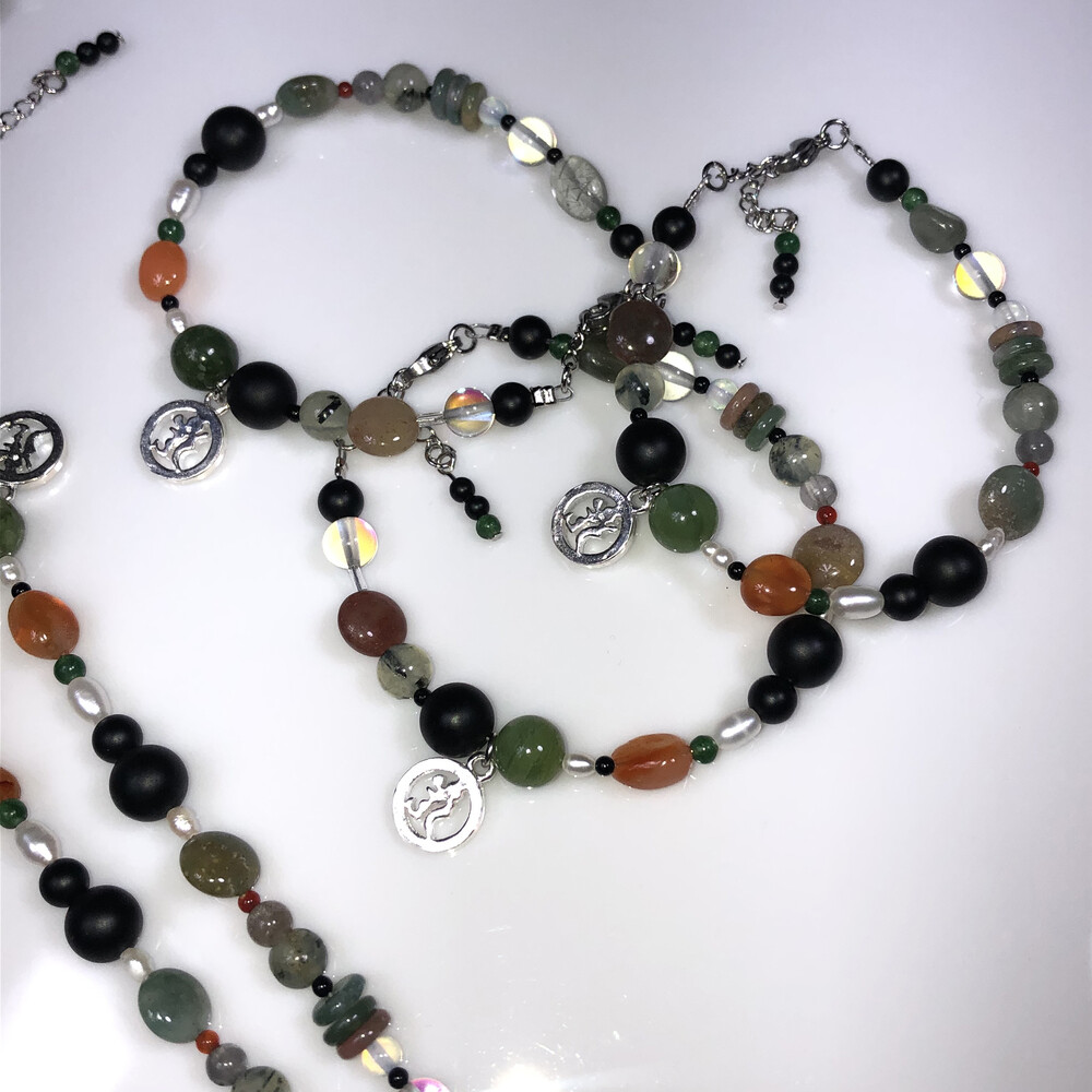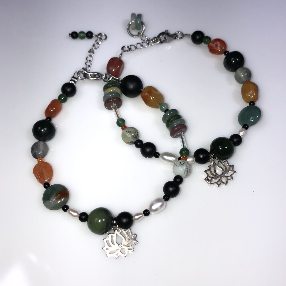 원석에 은 챰을 포인트로 넣은 팔찌 입니다.