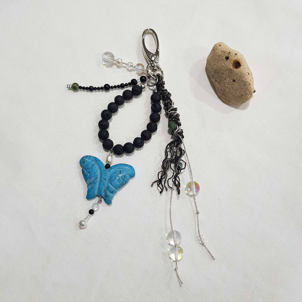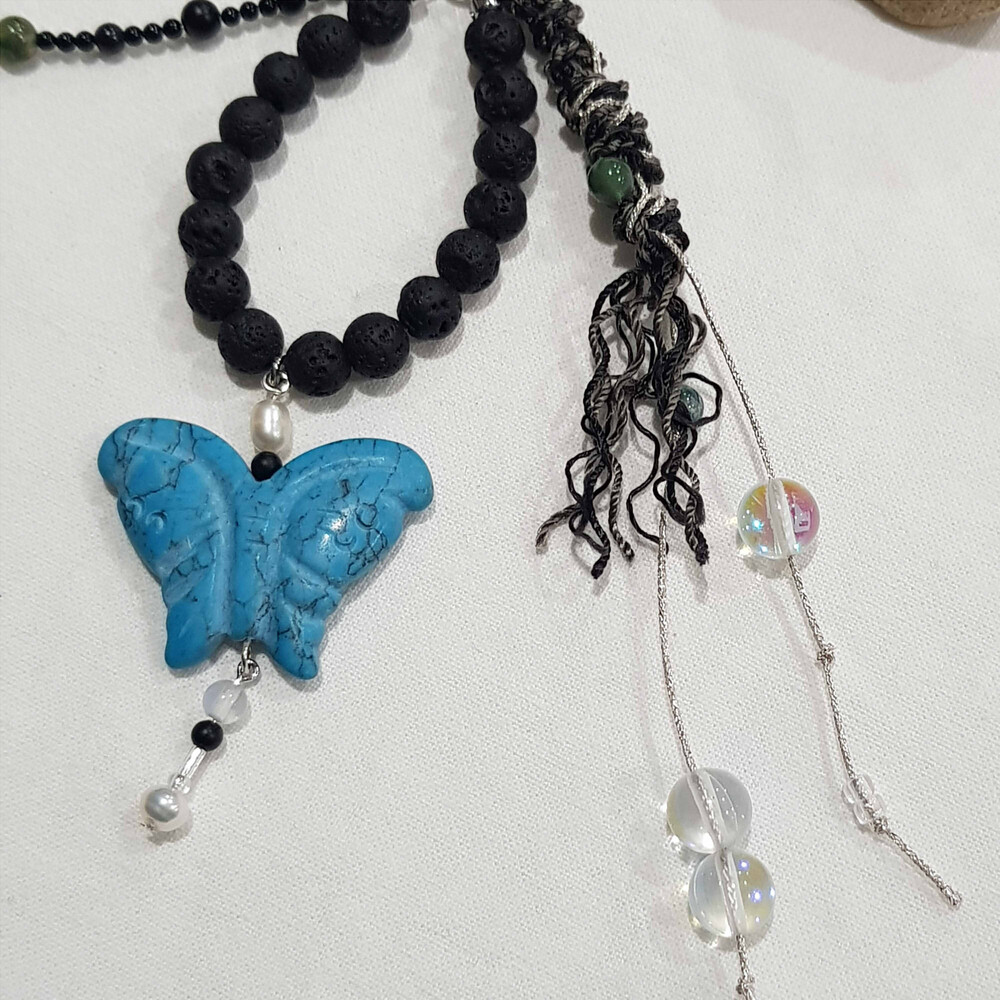 푸른색의 원석을 조각한 나비원석에 차가운 색들을 함께 엮었습니다.