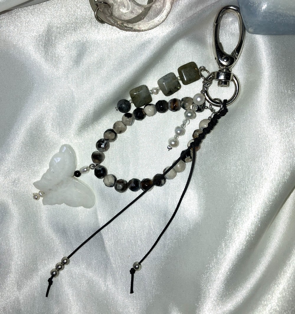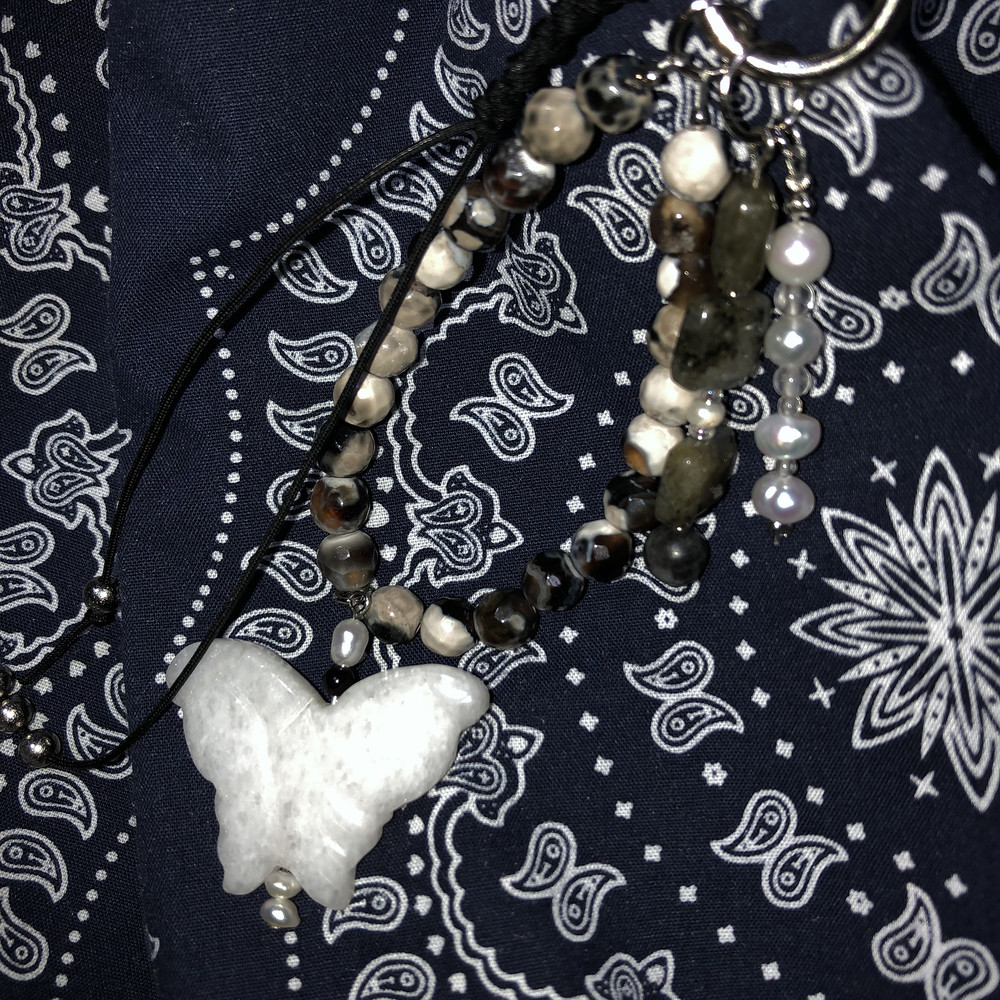 담수진주와 컷팅 된 원석, 속이 살짝 비치는 크렉이 들어간 나비원석에